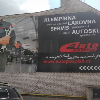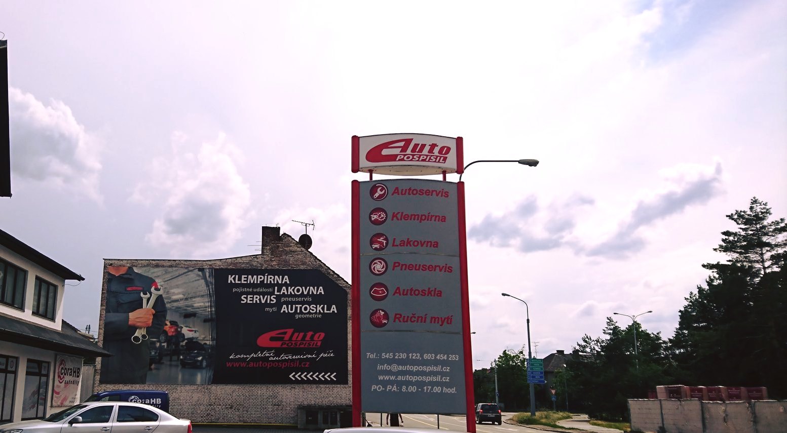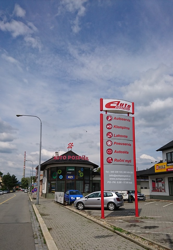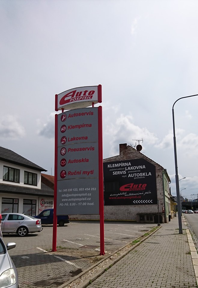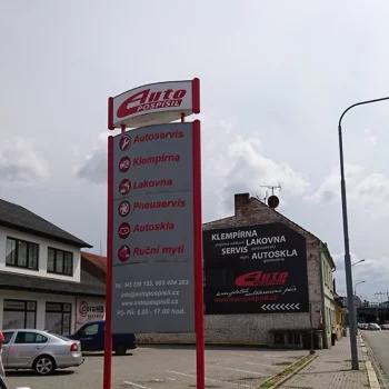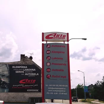 Máme rádi, když zákazník má jasnou představu o vizáži prodejny. V tomto případě tomu tak bylo. Písmo je silné, dobře se dá prosvítit. U loga bylo nutno udělat světelný kruh, z kterého nápisy vystupují. Montáž na plechové opláštění budovy se prováděla pomocí vložených konstrukcí v barvě opláštění.