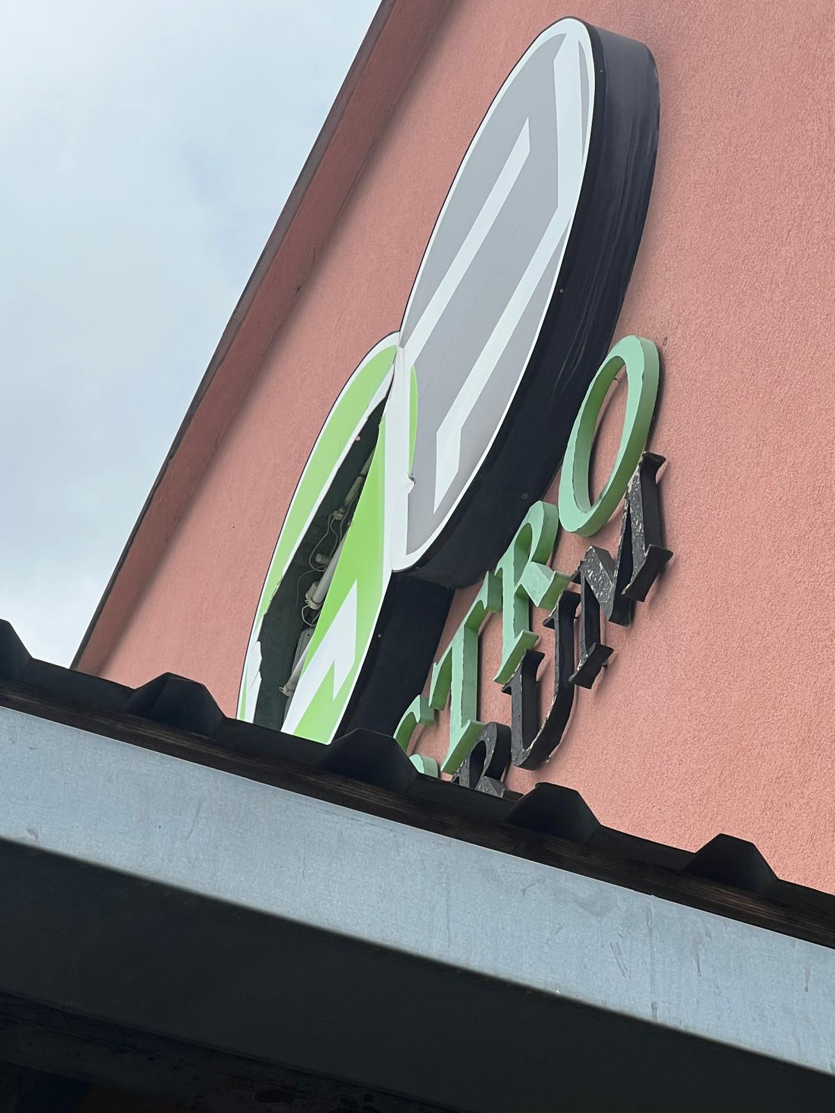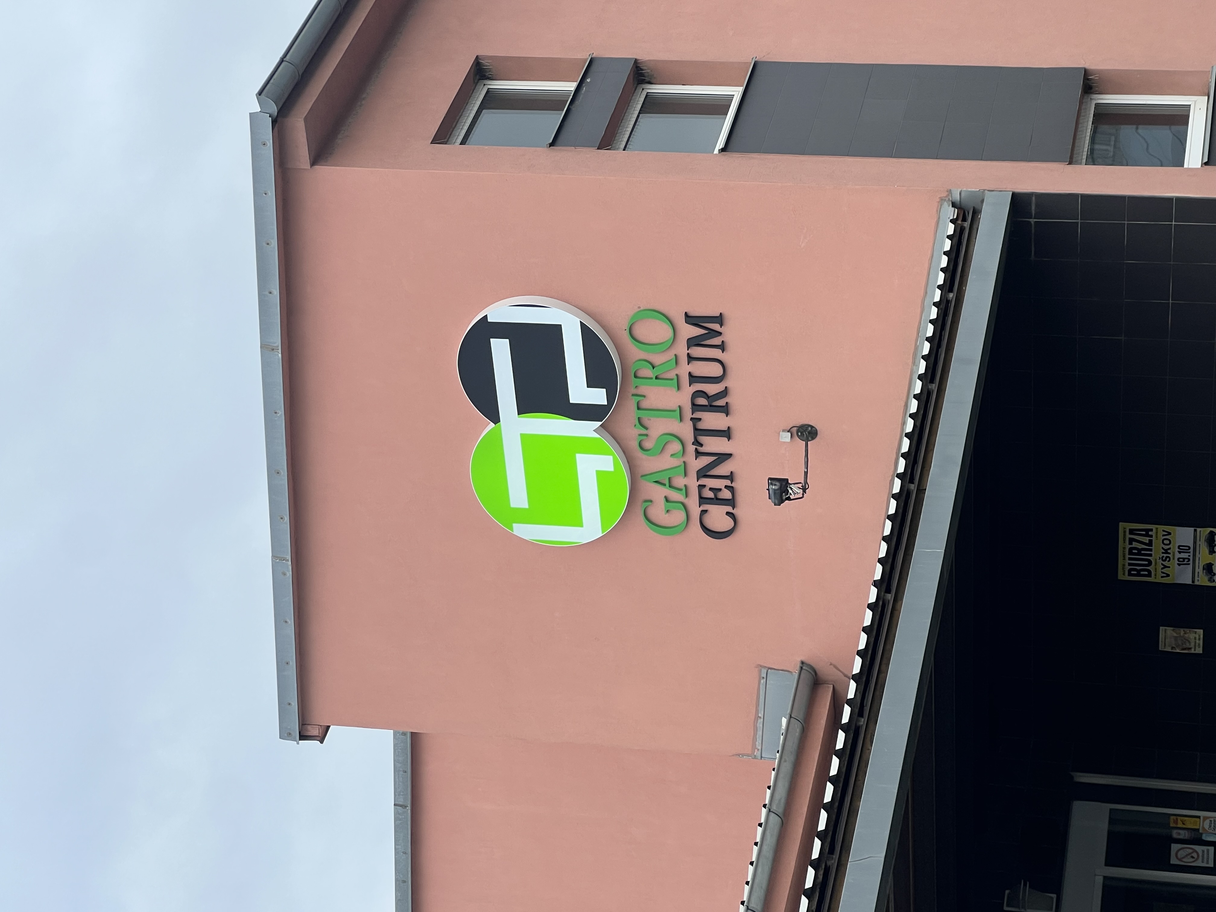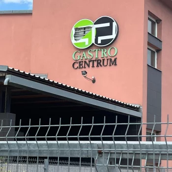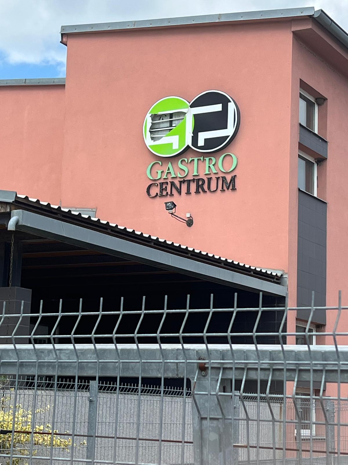 Vlivem bouřky a stářím, došlo k poškození světelného panelu loga GASTRO CENTRUM. Po provedeném ohledání zjištěno, že stávající označení (stáří více než 15 let) je celkově ve havarijním technickém stavu. Z tohoto důvodu bylo přistoupeno k jeho kompletní výměně. Nové logo bylo vyrobeno ve shodné grafice s původním řešením, s využitím současných materiálů a LED technologie. Součástí realizace byla také výroba nového nesvětelného nápisu, který byl vlivem stáří a degradace materiálu již nevyhovující.