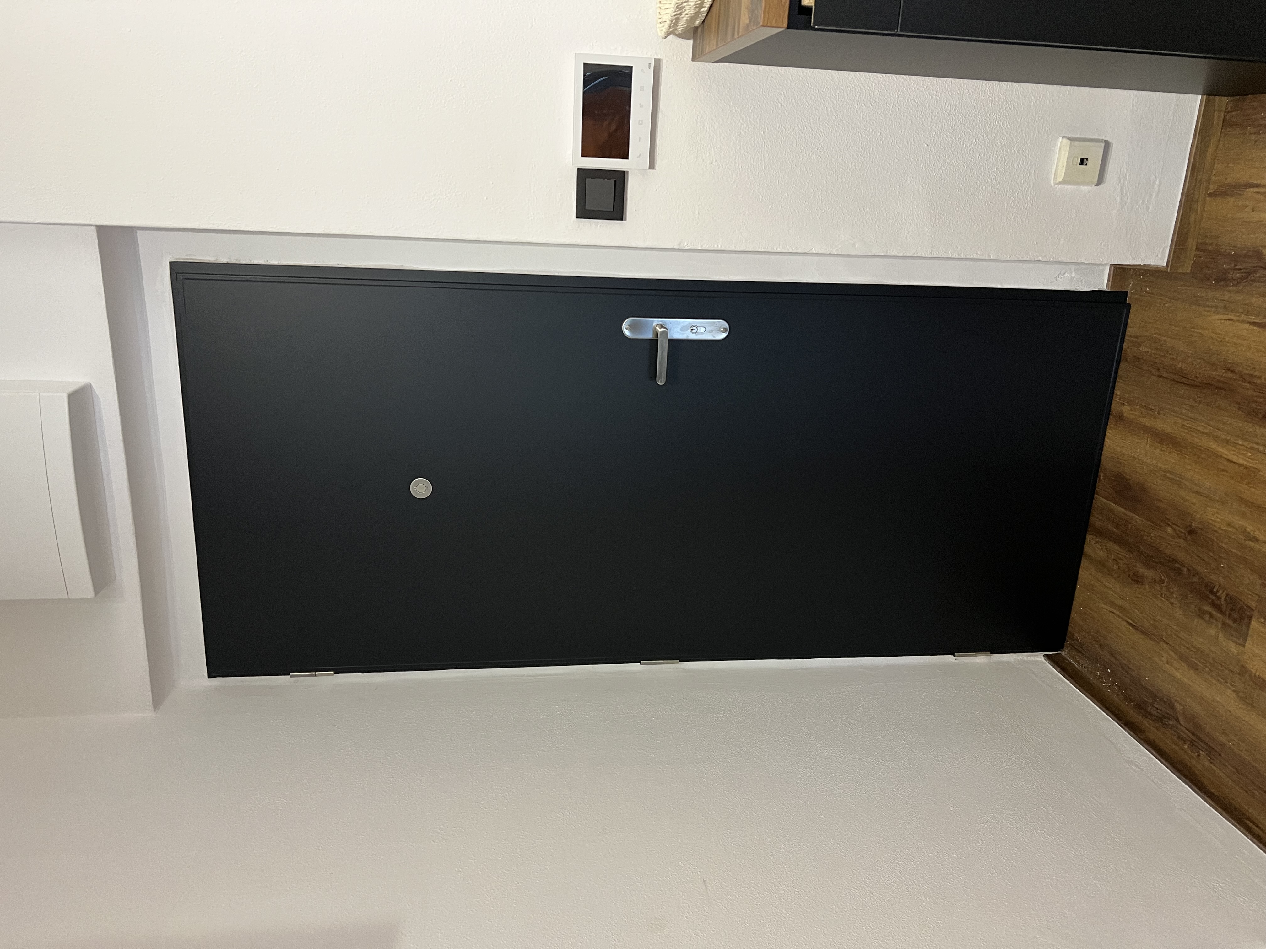 Polep dveří v bytovém domě, kde mají všechny dveře jednotnou barevnost z vnější i vnitřní strany. V případě, že vnitřní strana neodpovídá designu interiéru bytu, je možné ji jednoduše upravit aplikací designové fólie dle individuálního výběru. Řešení umožňuje rychlou změnu vzhledu bez zásahu do konstrukce dveří.