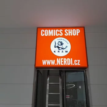 Máme rádi, když zákazník má jasnou představu o vizáži prodejny. V tomto případě tomu tak bylo. Písmo je silné, dobře se dá prosvítit. U loga bylo nutno udělat světelný kruh, z kterého nápisy vystupují. Montáž na plechové opláštění budovy se prováděla pomocí vložených konstrukcí v barvě opláštění.