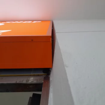Interiér doplňuje nápis do zasedací místností. Vyroben z plexiskla o síle 30 mm, z čelní strany tvořen červeným plexisklem s LED prosvětlením a nasvětlené plexisklo s logem umístěné na chodbě, které zajišťuje jednotnou vizuální prezentaci firmy.