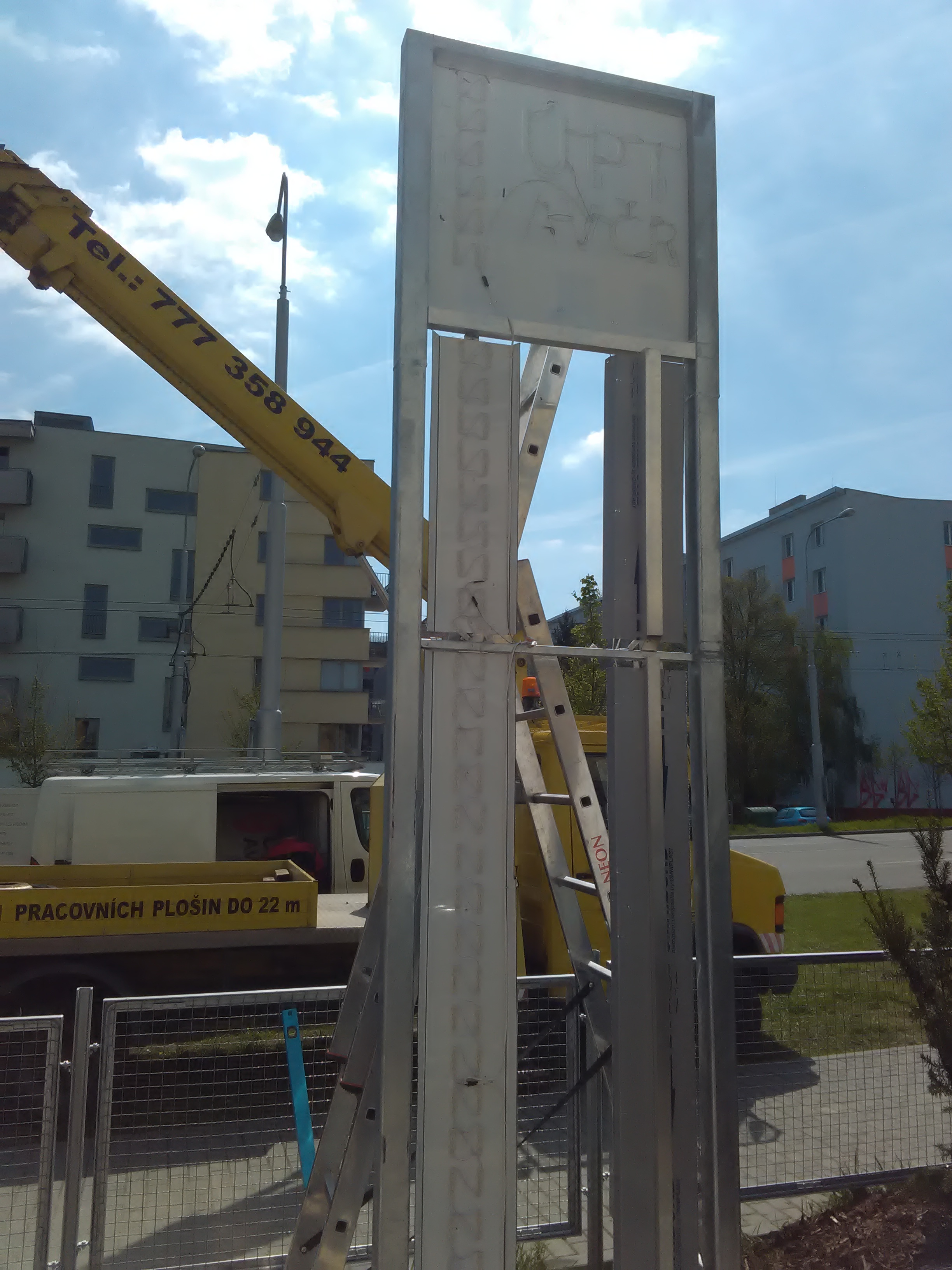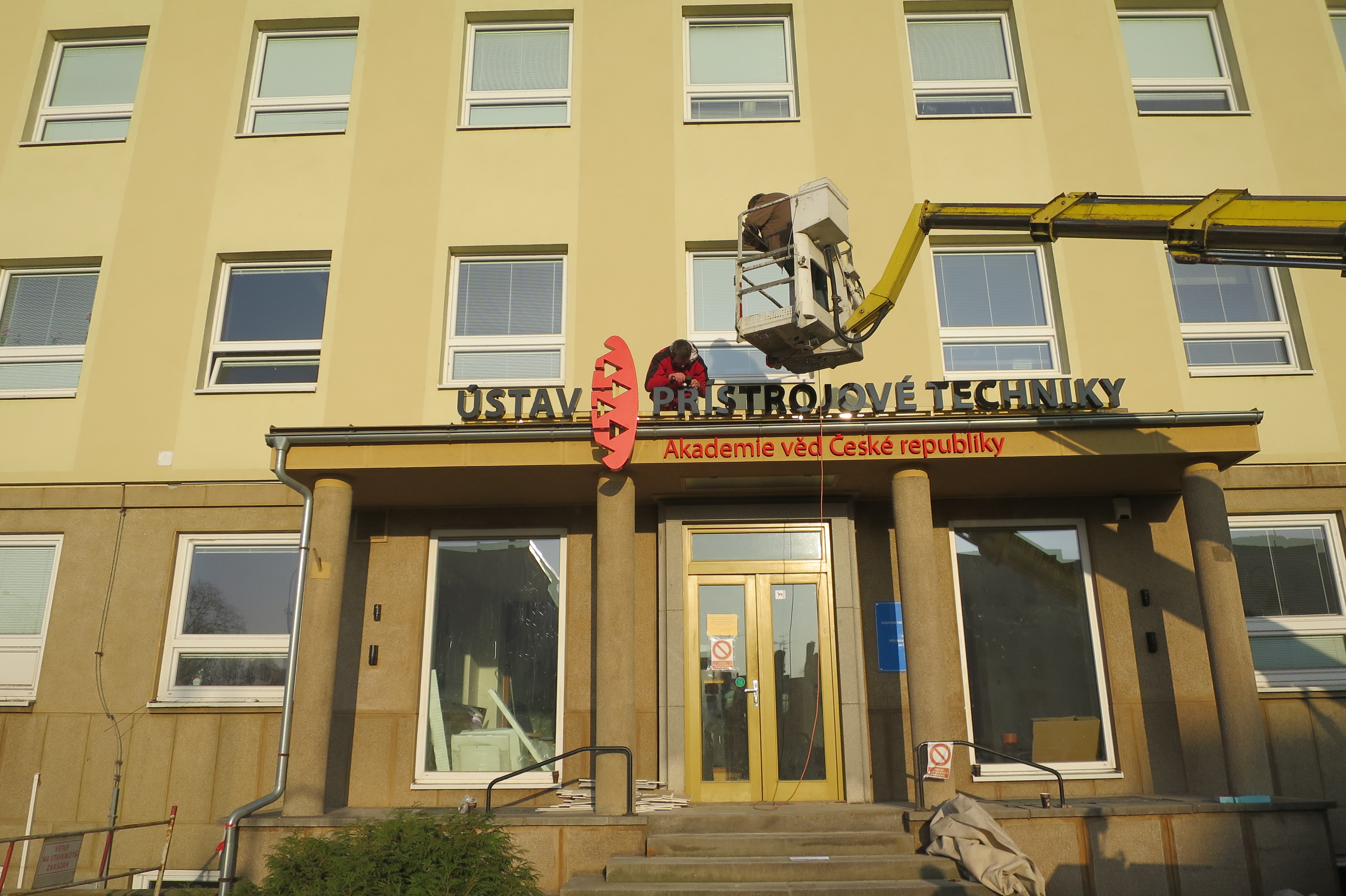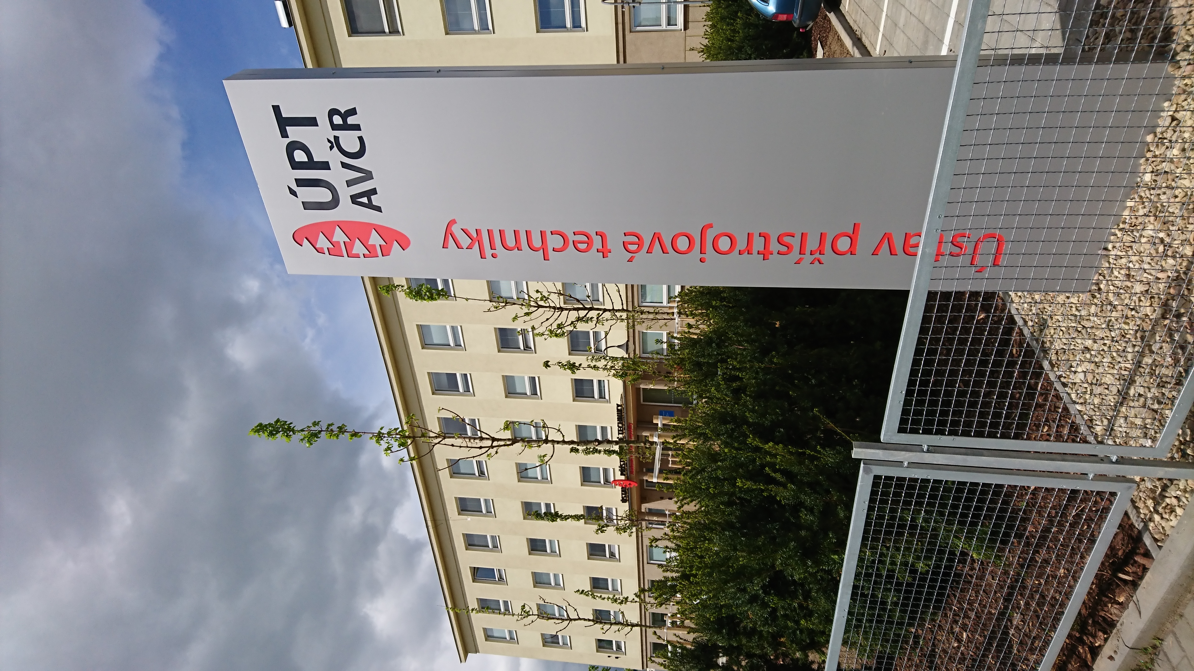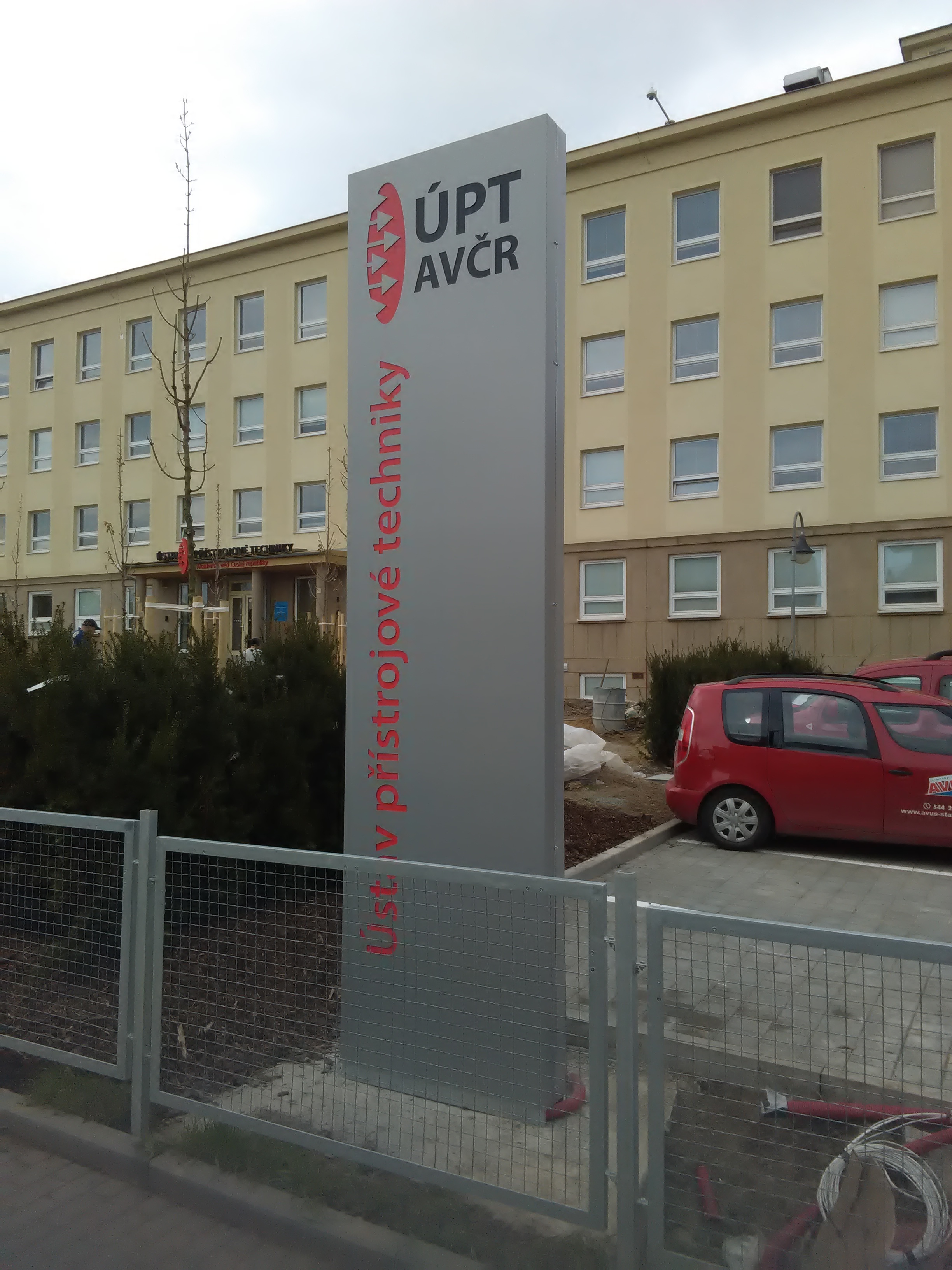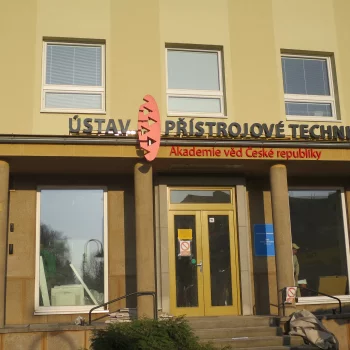Totem a světelný nápis ÚSTAV PŘÍSTROJOVÉ TECHNIKY