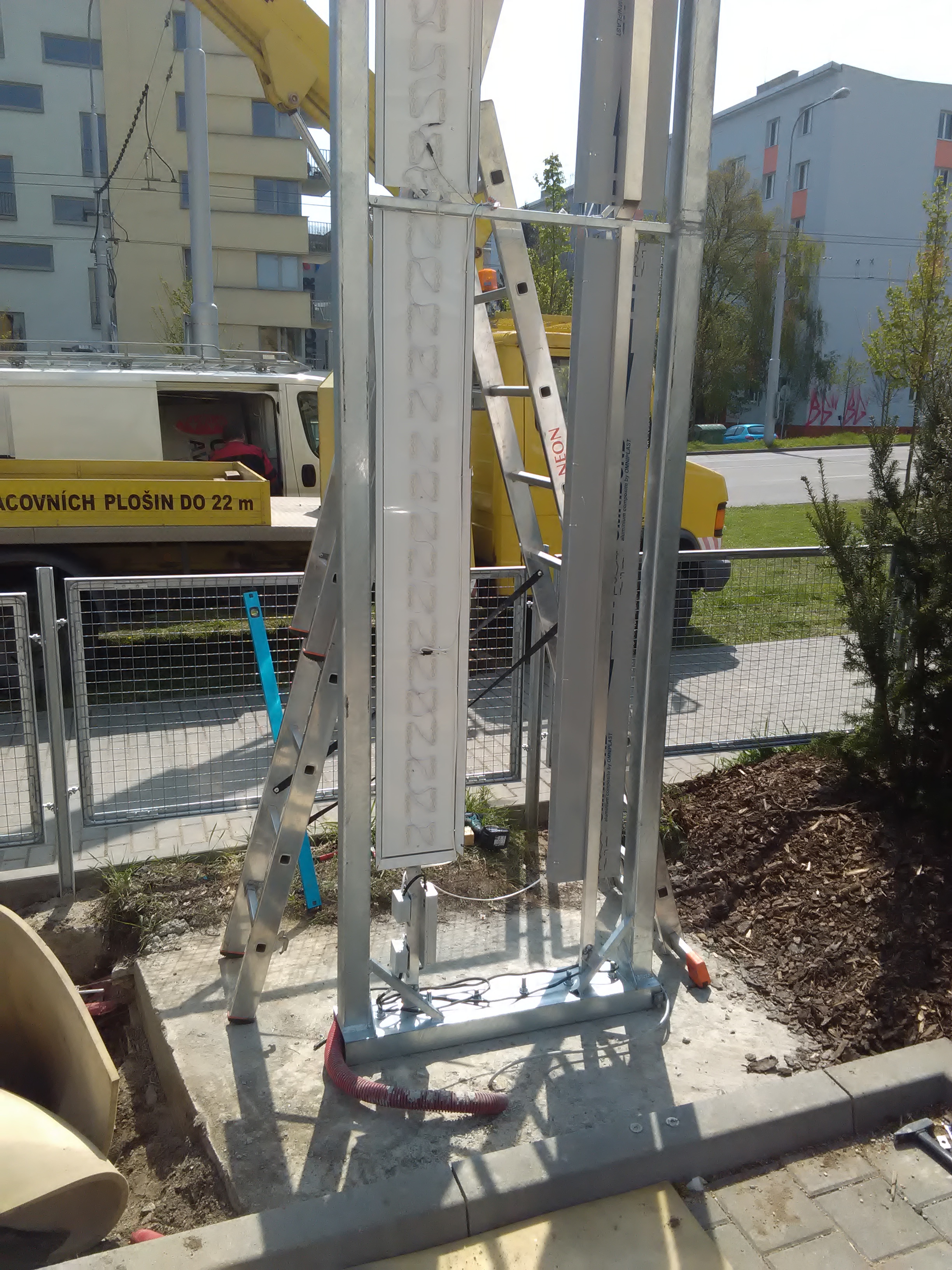 Pro instalaci světelného totemu je zásadní kvalitní betonový základ a nosná Al konstrukce, které jsou navrženy na základě statického posudku. Ten zajišťuje bezpečnost a stabilitu celé stavby.