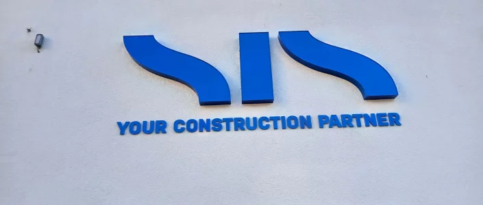 Realizace kombinovaného nápisu loga SIS CONSTRUCTION PARTNER.