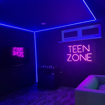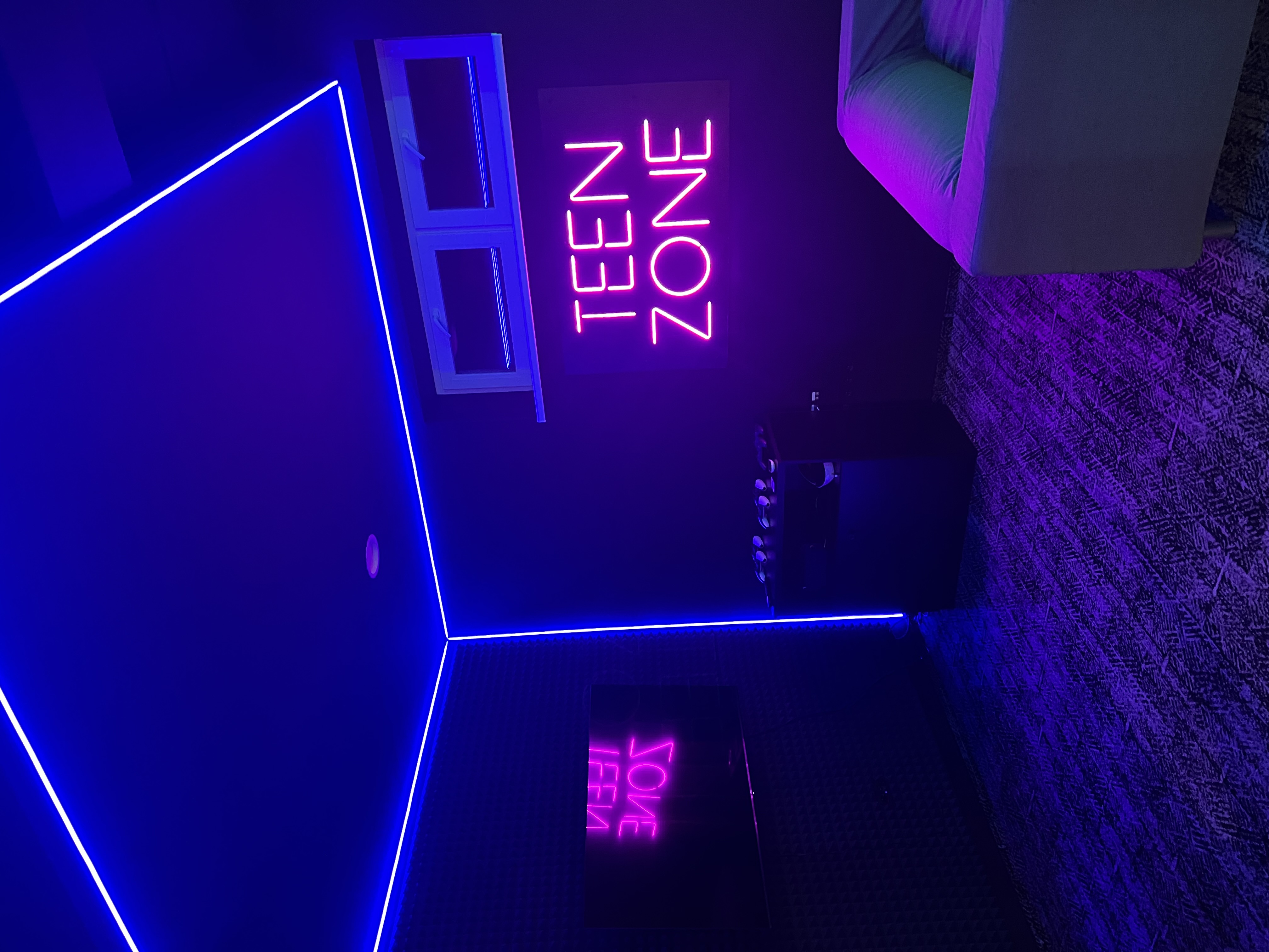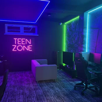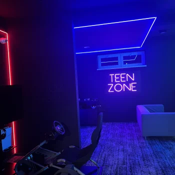 Herna nejen pro teenagery s individuálními herními boxy, které jsou opticky vymezeny LED neonem osazeným v hliníkových profilech s difuzorem pro rovnoměrné rozptýlení světla. Dominantní nápis TEEN ZONE je proveden v RGB technologii s možností dynamické změny barev a světelných scén, řízený pomocí ovládací jednotky (DMX / dálkové ovládání). Celé řešení je navrženo s důrazem na vysokou životnost, nízkou energetickou náročnost a vizuální efekt.